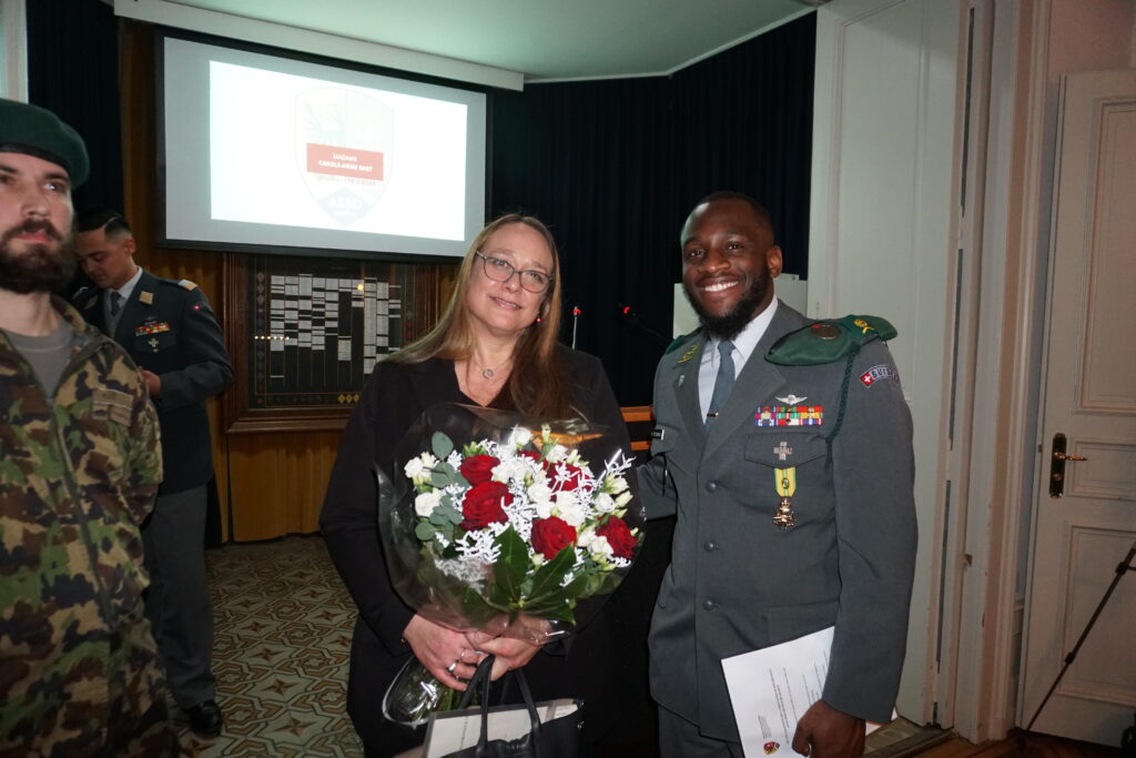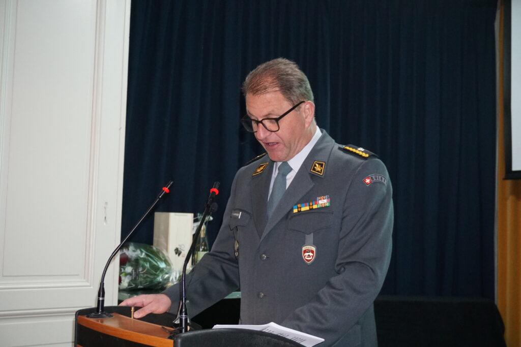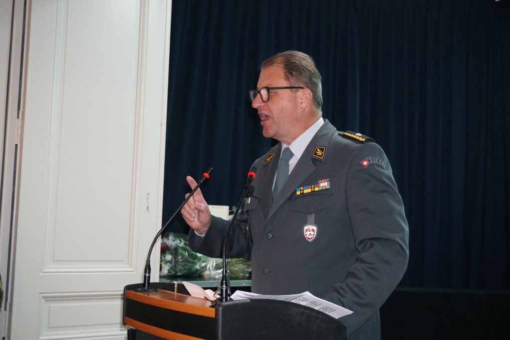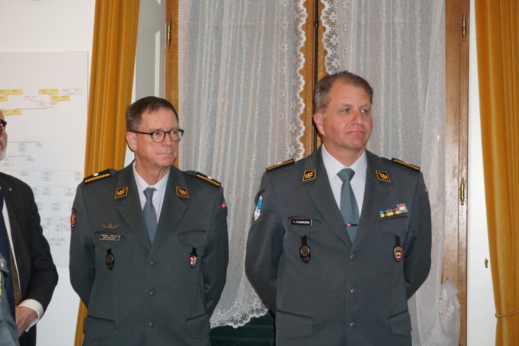 L’allocution de circonstance a ensuite été prononcée par le brigadier Yves Charrières, représentant du Chef de l’Armée. Officier de milice, commandant de la Patrouille des Glaciers et remplaçant du commandant de la Division territoriale 1, il a rappelé le rôle de cette division dans l’appui aux autorités civiles en situation extraordinaire, ainsi que l’importance du lien entre l’armée, la milice et la société civile. Sa présence a souligné la reconnaissance institutionnelle portée à l’ASSO et à son engagement durable.