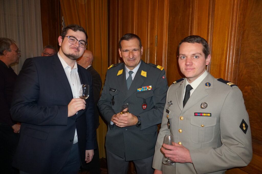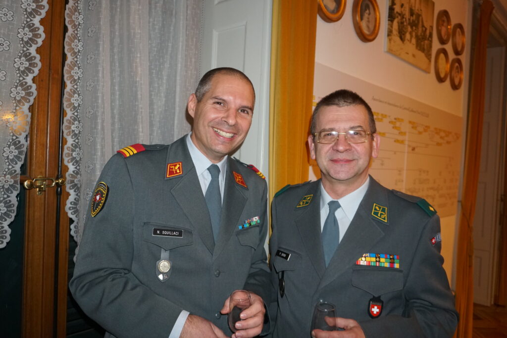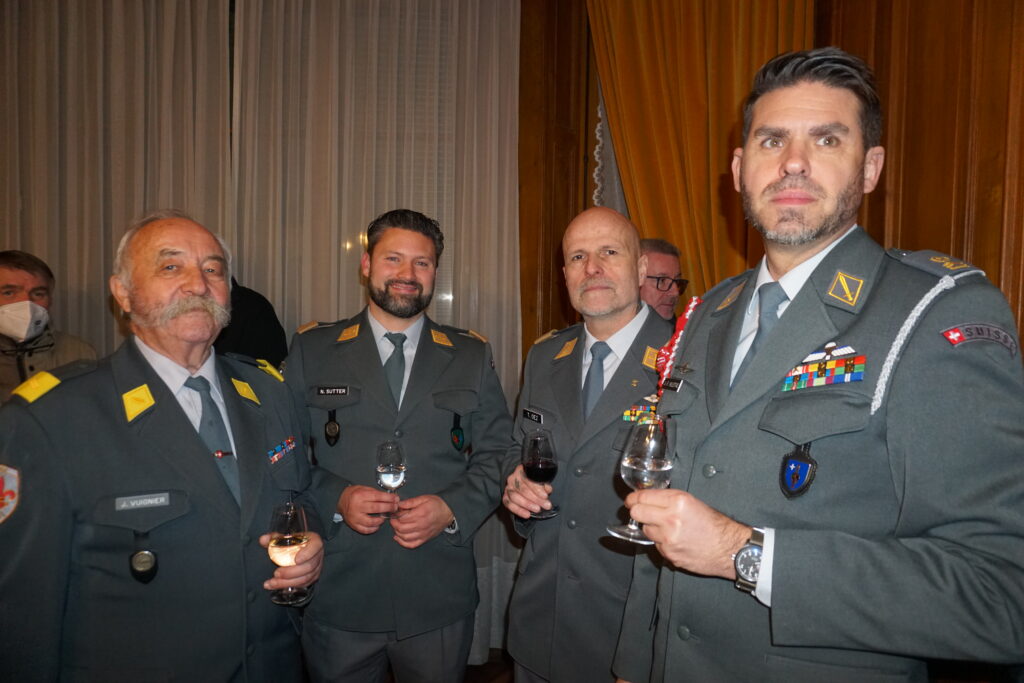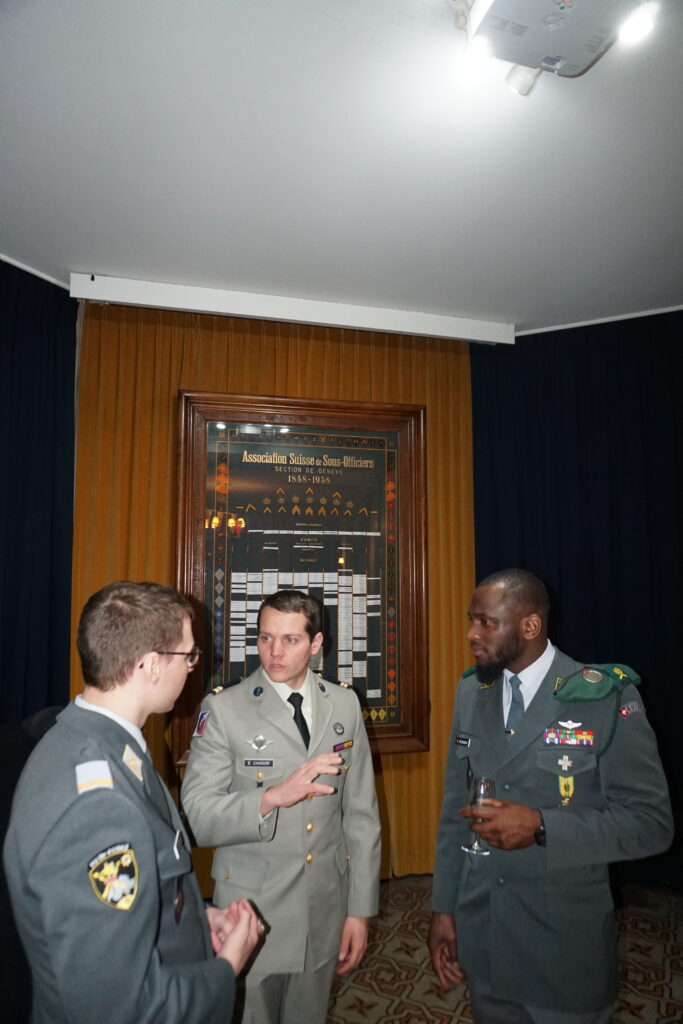 La partie officielle s’est conclue par l’interprétation du Cantique suisse, entonné après le garde-à-vous, puis par les mots de clôture du maître de cérémonie. Le capitaine William Sallin a officiellement déclaré close la partie protocolaire du Vermouth ASSO Genève 2026 et invité les participants à poursuivre la soirée autour d’un apéritif dînatoire, dans un esprit de convivialité et de camaraderie.